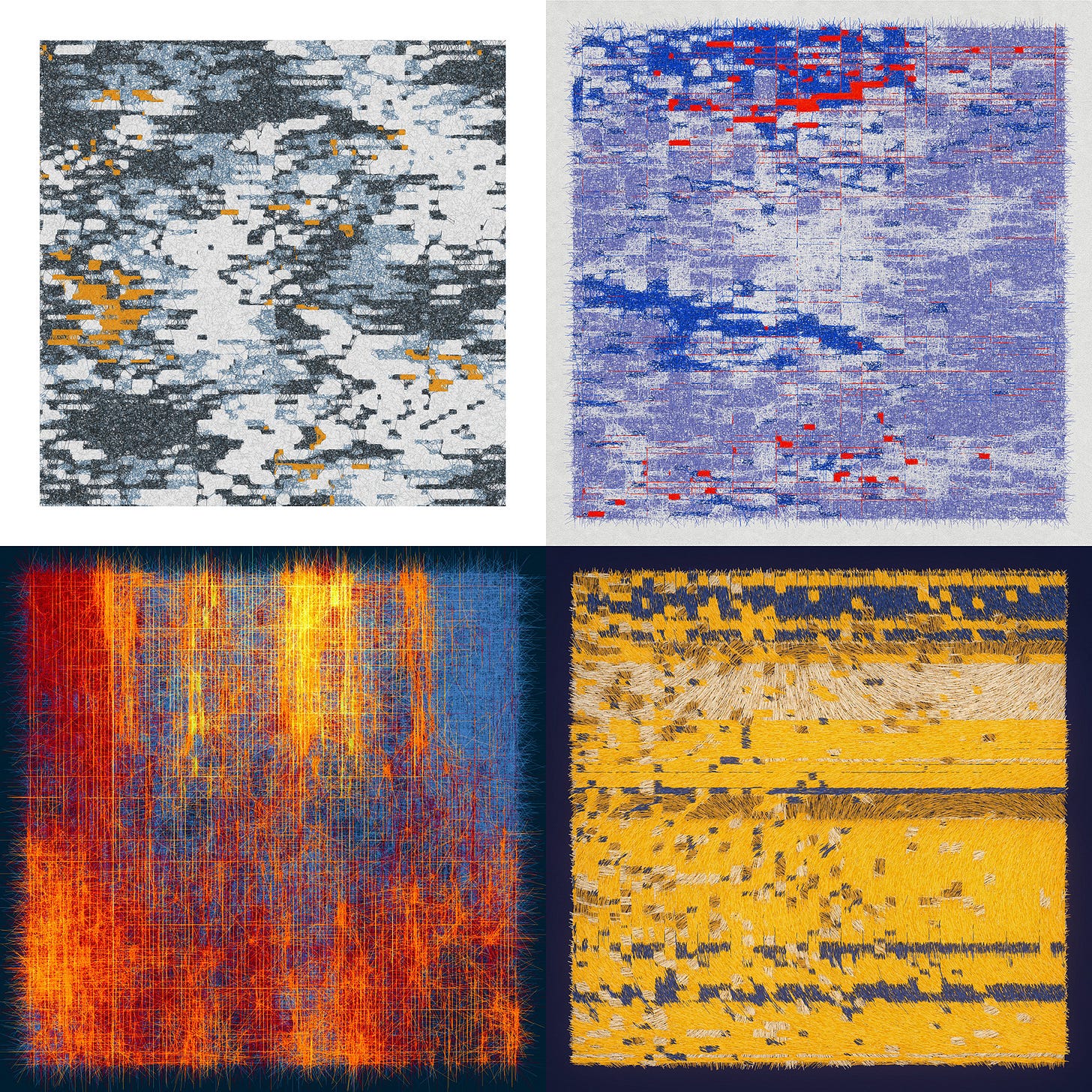 Here are some that have been generated. They are selected to show some of the possible variations, in terms of colors, patterns, movements of strokes.
